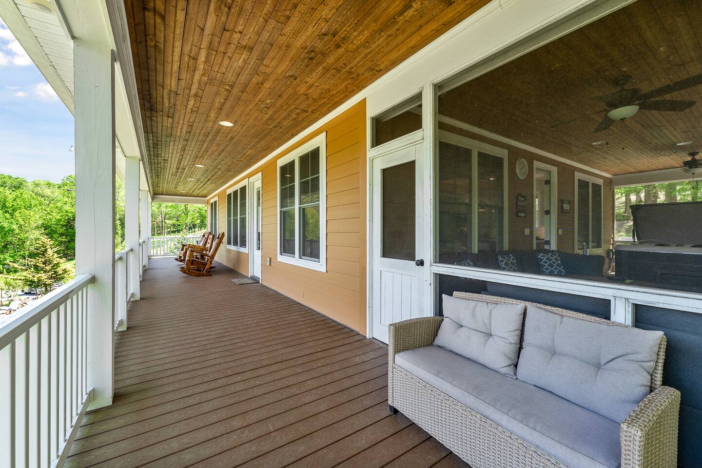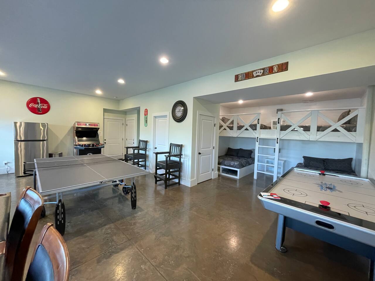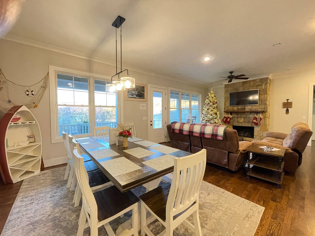 VACATION HOME gets a new definition here with activities for all ages. Walking distance to the lake, public boat ramp, kayaking, playground, campground, swimming area, hiking trail, picnic area, and covered pavilion for large groups…plus our incredibly equipped game room. 3 minute drive to Hurricane Marina with seasonal boat rentals and restaurant. House is roomy modern design w/2 king suites, 2 queen BRs, sitting area w/sleeper couch. Well furnished deck & screened porch for additional leisure.