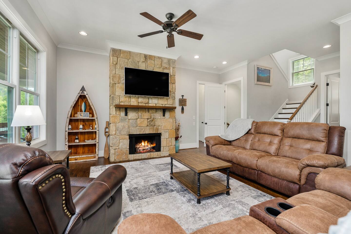 Surrounding this property is a public access area for the lake (boat dock, boat ramp, beach, picnic tables, large group pavilion), hiking trail, campground, and several other lake homes. This location is unique for Center Hill Lake because there are no steep hillsides or rocky shorelines between the house and the lake.